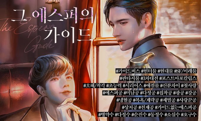 5월 23일 김코히 작가님의 <그 에스퍼의 가이드>작품이 리디북스에서 출간됩니다! 가이드가 없는 에스퍼 백건우! 이능력총회에 가려고 탄 유라시아 횡단열차에서 승무원으로 일하는 운명적인 상대, 저를 가이딩해 줄 수 있는 일리야 윤을 만나게 됩니다! 큰 스케일의 가이드버스를 만나보세요! RT2분☕️