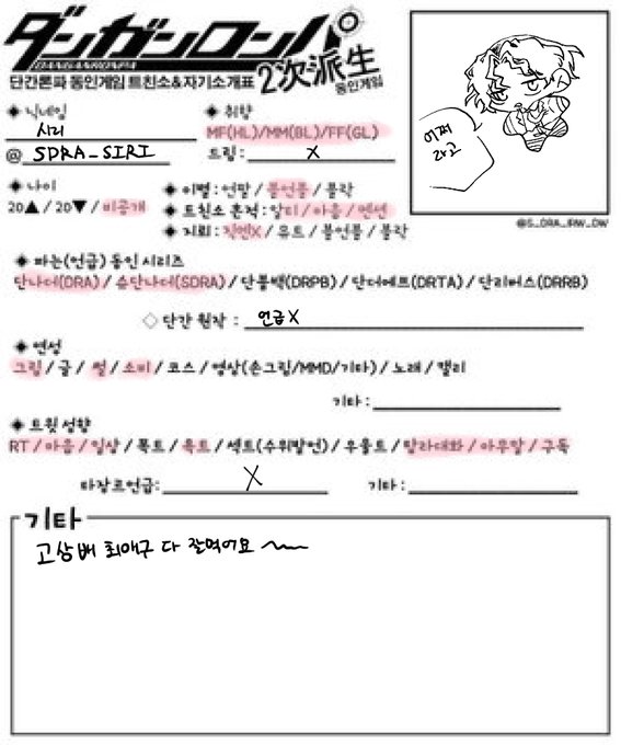 #단나더_트친소 #슈단나더_트친소 최근에 입덕했습니다~! 치에쿠부로와 우에하라 매우 좋아합니다~~!~! 단간이 본진장르는 아니라서 접률은 낮게 가끔씩 들릴것 같아요! 알티나 마음 눌러주시면 마음맞는분 찾아갈 예정입니당~! •0•
