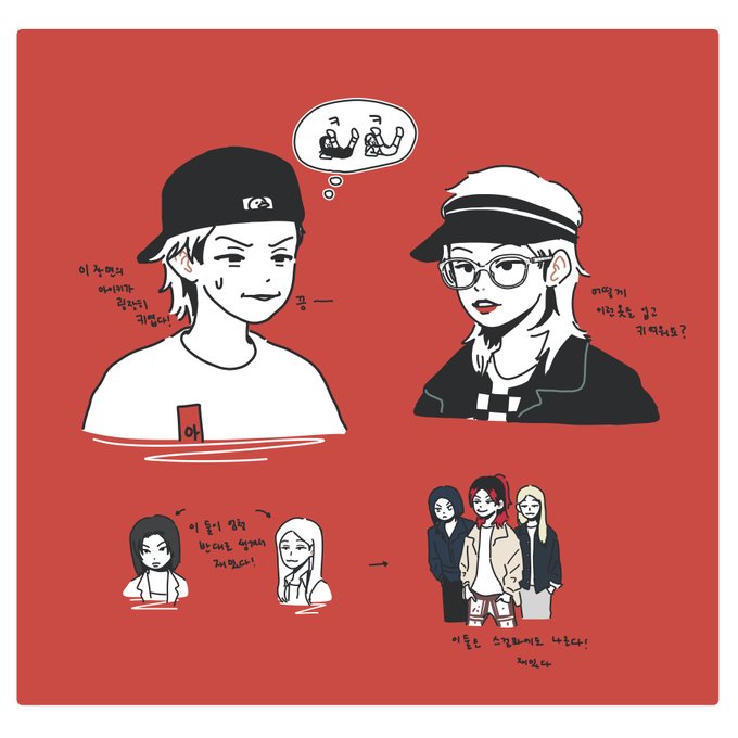 스우파에서 제일 좋아하던 리정, 아이키 그렸었어요^^마음은 춤신춤왕인데 몸둥이는 가로등마냥 빳빳한 ㅋㅋㅋ