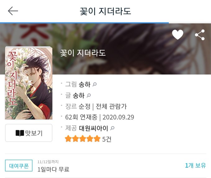 ✅송하 작가님의 <꽃이 지더라도>🥀