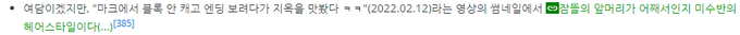 여담이겠지만, "마크에서 블록 안 캐고 엔딩 보려다가 지옥을 맛봤다 ㅋㅋ"(2022.02.12)라는 영상의 썸네일에서 잠뜰의 앞머리가 어째서인지 미수반의 헤어스타일이다(...)