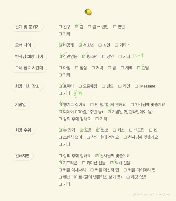 천사님은 아래 표를 작성해서 와주세요!