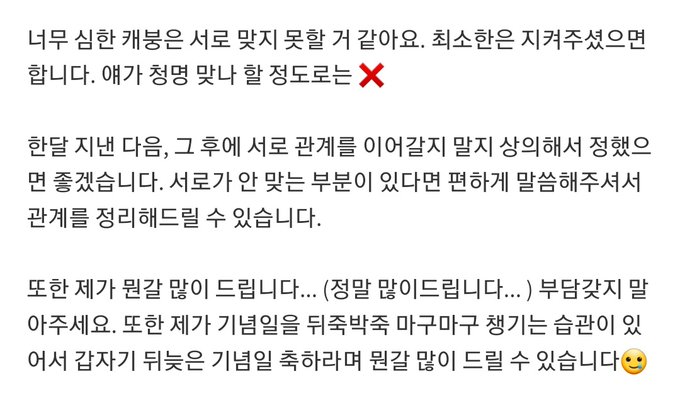 좋은 인연 오래 갈 수 있을 분이면 좋겠어요!