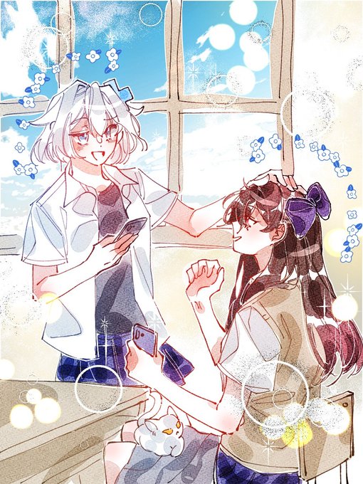 제프님이 그려주신 청춘고딩 녹차라떼(feat. 꼽사리 딸기) 너무 귀엽고 사랑스러움... 아는 선배 카네다랑 여사친 제프사이에서 애정전선 이상무를 무전하는 남사친 카임