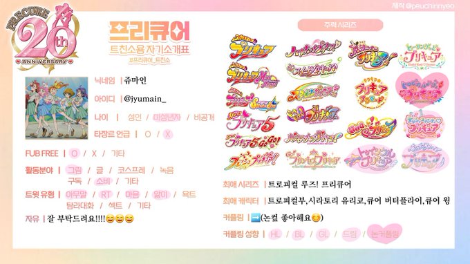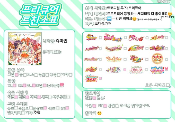 #프리큐어_트친소 트친소표가 바뀌어서 다시 올려봐요...!! 그림도 잘 안그리고 재미도 없고 하루종일 주접만 떠는 사람이지만....친해져요☺️☺️