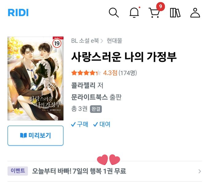 <사랑스러운 나의 가정부>가 리디에서 1권 무료 행사 중이에요~! 꽃피는 봄날에 어울리는 달달물 이참에 읽어보셔요💖 저렇게 생긴 이쁜이들의 역경극복 염천스토리랍니다😆 #다정공 #할리킹 #미남공미인수 #나이차이있는공이수를우쭈쭈 RT 1분께 나머지 2,3권 마저 쏴드릴게요💕(1권은 무료로><)