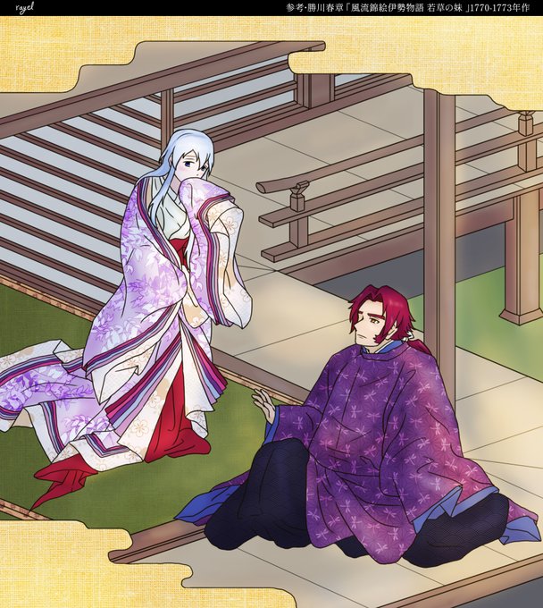 카츠카와 슌소의 <풍류 니시키에 이세모노가타리 와카쿠사노이모>(1770-1773)를 모사