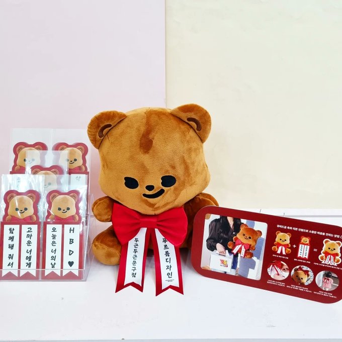 많이 기다리셨던 푸르름 신상 스티커들과 인형!! 입고 되었어요 이번 인형은 별도 판매되는 멘트 스티커를 리본 띠에 붙여 축하 메시지를 전달할 수 있어요