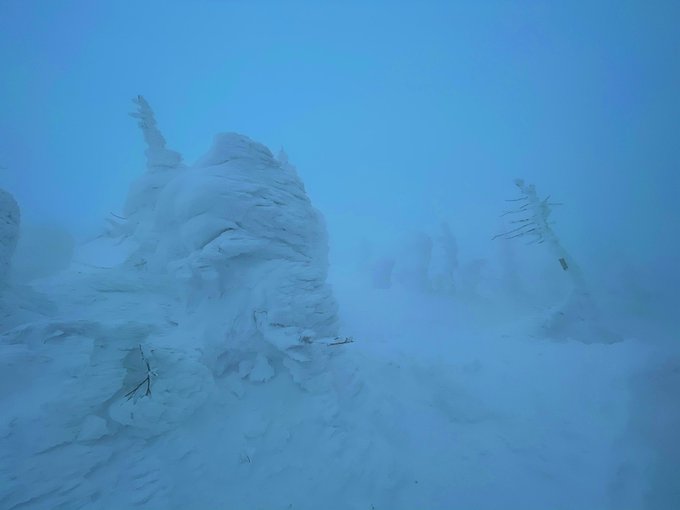 樹氷原はホワイトアウトで何も見えない状態でした。