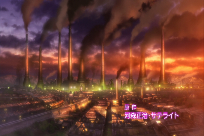 アニメの劇中で行ってみたい町、「AKB0084」1話登場のくすんだ工場惑星。ブラックレインの大阪ロケを参考にしたっぽい美術でスチームハンマーの音が鳴りキャタピラの採掘機が蠢きダウナーで暗い芸能禁止の町。ヒロイン達が過去を置いて旅立つ町だがキラキラなアキバ星より黄昏インダストリアルで萌え