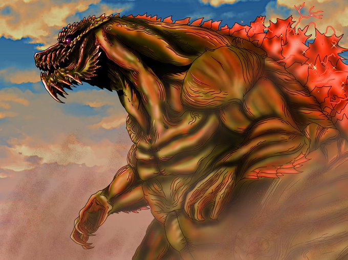 #1年で私はここまで成長しました 塗りが単調で、安いアニメ感が凄かった1年前のスペースゴジラ・アース 同好の絵描きさんに教えを貰い、今の極み滅するゴジラ・アース