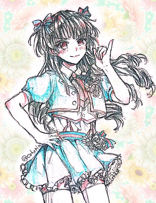 #1番目に来たリプのキャラに2番目に来たリプのキャラの衣装着せたいです ①シャニマス 黛冬優子 ②エムマス 水嶋咲(ホワイトデー) シャーペン絵で失礼💦かわいい衣装なのにジャケットのボタンが右に付いてるのすっごいドキドキしました😍 リプありがとうございました!