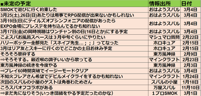 非公式 #大空スバル スケジュール
