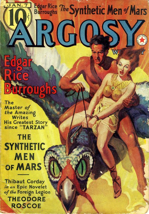 Born #OTD in 1900, artist Rudolph Belarski painted "Argosy Weekly" pulp covers for three of #ERB's most famous series: #CarsonOfVenus, #Tarzan, and #JohnCarter