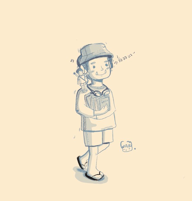 ฟังเพลงวอแว ถือหนังสือนิทาน ใส่รองเท้าแตะคู่ใจของพี่ แถมวาดลายเซ็นแรกของชีวิตไว้ข้างๆอีก ส่วนพี่วอร์นั้นเท้าเปล่าสะพายกีต้าร์คู่ใจอยุบนไหล่ของยักษ์5555สบายใจใช่มั้ยล๊าาที่มีเราอยู่ซัพพอร์ตเสมอ ไปคับไปด้วยกันไปได้ไกล