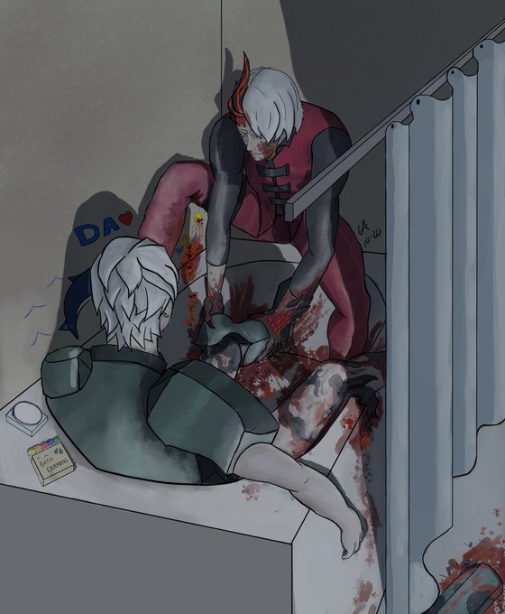 "His nails turned to claws under the nascent trigger, and he tore the leg guard fully off. Blood sprayed Dante’s face and arm and the bathtub, and Vergil bent forward."