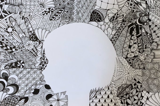 人体のパーツを模様に変えて描いてます。