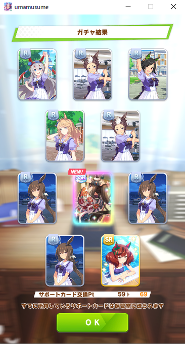 と言いながら2022年1月3日の無料10連を引いたら、SSRアヤベとRアヤベ3枚来ました←
