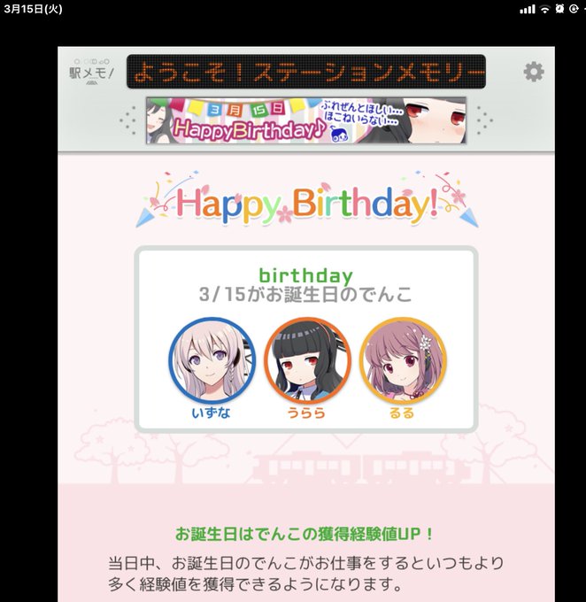 今日2022年3月15日は駅メモのでんこトリプル誕生日