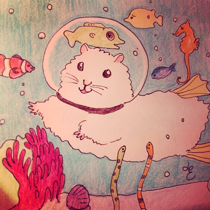 Someday I want to go scuba diving 🐠🐟#kawaii #illustration #blue #design #drawing #hamster #pet #sea#Michikoo29avril