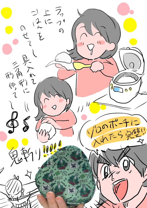 3コインズでワンピースグッズわんさか売ってた!!(//∇//) ゾロのおにぎりポーチ、あたしみたいなズボラ飯女には最高の代物 ✨🤟保冷機能つき!