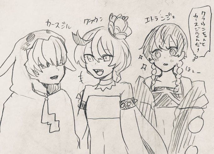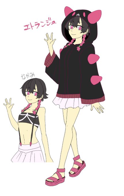 ゆーちゃんの描いたちびキャラに本人も混ぜて3人組アイドルにしちゃおうと思い普通頭身でデザ追加しました御査収下さい(推しの子風