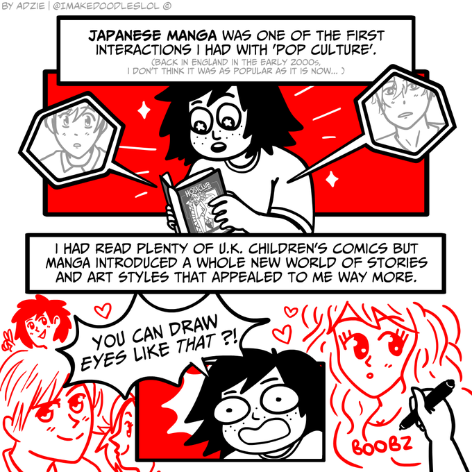 #30ABOUTME 5/30 - POP CULTURE - #Manga and #anime are still a huge influence on my #art style and how I layout #comics :D I still vividly rmbr spending hours trying to get the iconic eye style perfect :') Do you have a manga/anime favourites or any recommendations? #autobiocomic