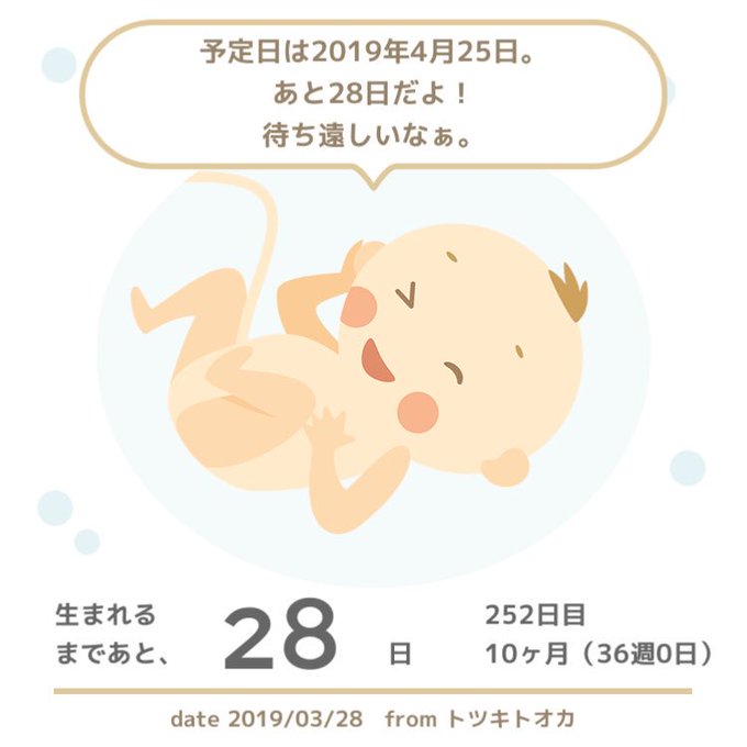 今日から36w&10ヶ月突入ー!ついに臨月だよ!なんかここ何日かでもうワンランクお腹が重くなってきた気がしてて正直そろそろキャパオーバーしそうww大きくなるのはいいことだからいいんだけどね!もう1ヶ月で産まれちゃうのかーと思うとホントビックリだよな。。