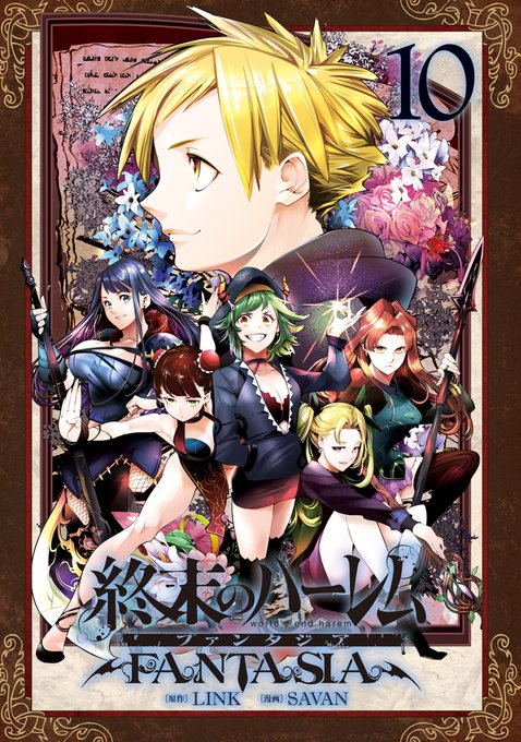 [1/2] Обкладинка та кольорові ілюстрації 10-го тому манґи "Shuumatsu no Harem: Fantasia" (Гарем кінця світу. Фантазія).