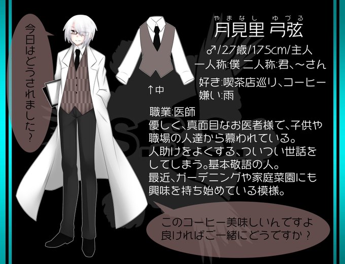 実はずっとちまちま描いてました……。こちらの企画(@SSS_03sss )に三人目、主人を参加させていただきます〜。年齢は若いけど三羽鴉設立直後くらいからいる男です。出掛ける時高確率で雨が降る雨男です。よろしくお願いします。