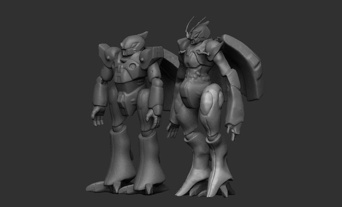 3Dスキャナで取り込んだプラモデルのパーツをZbrushで伸ばしたり拡大縮小したりして加工。