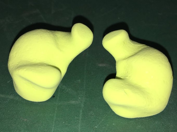 ①耳型を専用シリコンで採取しカッター、ヤスリで整形