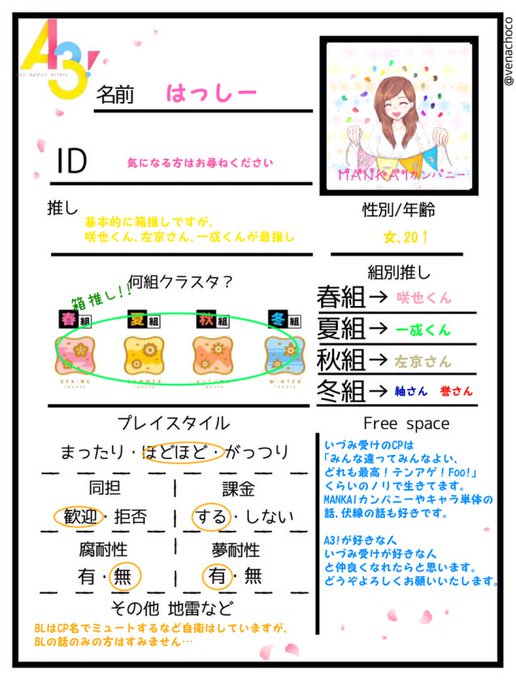 A3!好きな人・いづみ受けが好きな人と仲良くしたいです!