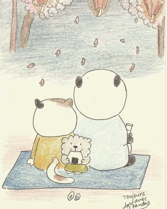 #ぱんだ歳時記3 #ぱんださんの小径 #panda #illustration #sakura #cherryblossom #おにぎり何個目?