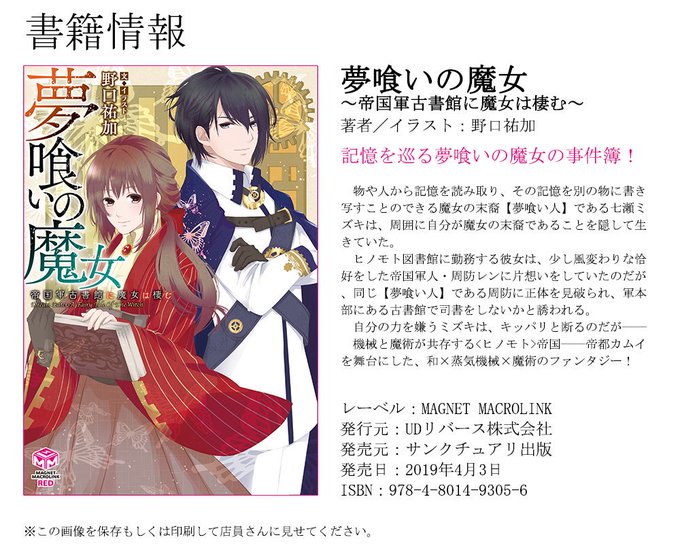 【告知】蒸気機械と魔術が共存する帝都ヒノモトで「記憶」を巡る事件が起こる。それを追うのは魔女の末裔「夢喰い人」──新レーベル「MAGNET MACROLINK」より4月3日「夢喰いの魔女」発売です