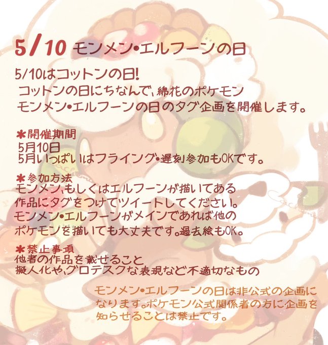 コットンの日にちなんで、綿花のポケモン、モンメンとエルフーンの日のタグ企画を開催します。