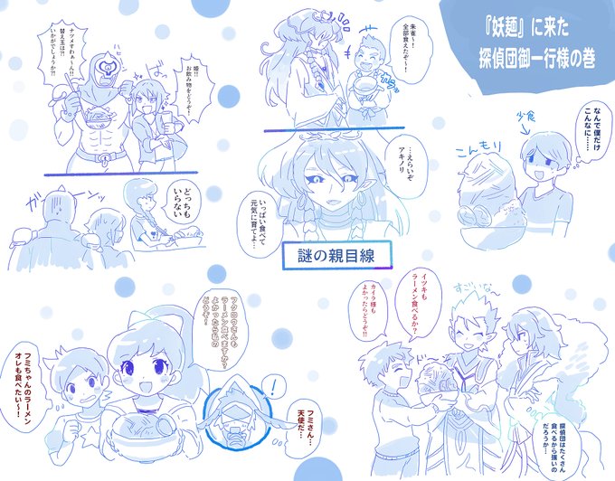 妖麺に来た妖怪探偵団+αの妄想です みんなで仲良く食べてたらいい… 1周年おめでとうございます!!! #6月20日は妖ウォ4発売1周年 #ぼく空発売1周年おめでとう