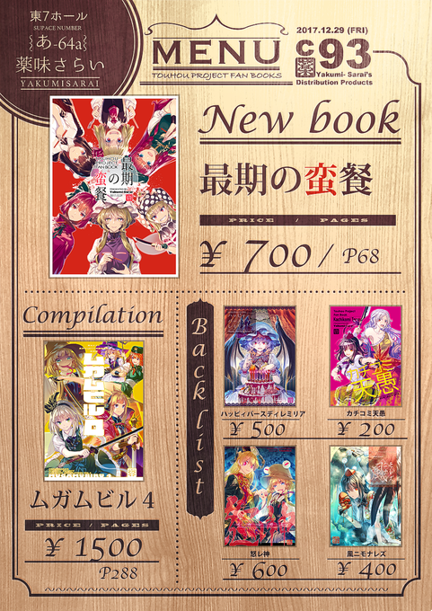 冬コミのお品書きです!1日目 東7ホール(あ-64a)「薬味さらい」です。