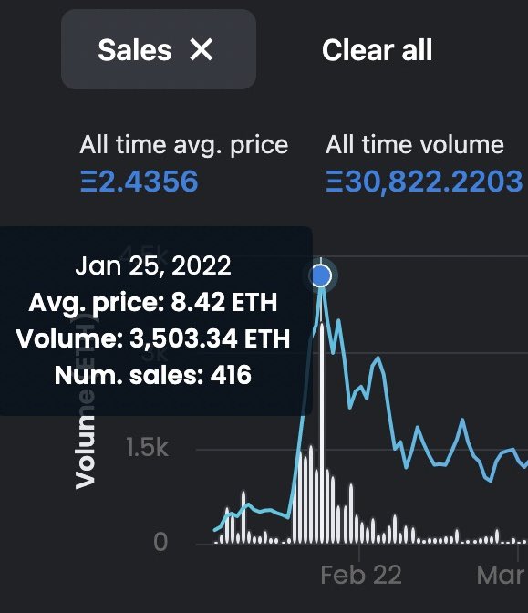 Fun fact about @Overlord_xyz ..On January 25th, @Cbcreepz saw it’s largest 1 day volume sales ever. On that record Tuesday, 416 sales were recorded at 3,503.34 ETH with an average sale of 8.42 ETH. Ethereum averaged $2,498 on that day bringing total daily sales to $8,750,494🦎 https://t.co/WfCheIJZct