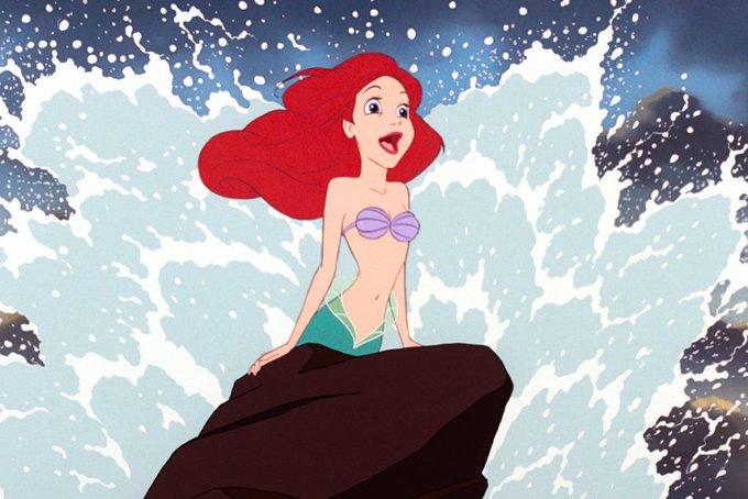 - Ariel tem uma cena em uma rocha contra as ondas