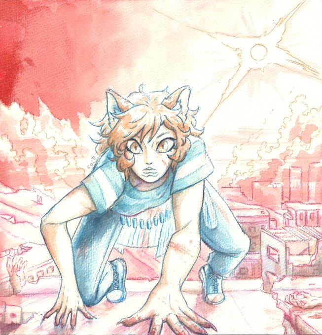 Una ilustración que hice mitad en tradicional y mitad en digital. La segunda imagen es de hasta donde llegué más o menos con acuarela, después la escaneé y seguí con Clip Studio.