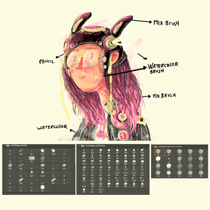 Te dejo aquí la colección de Pinceles para Photoshop (acuarela, mix (gouache, lettering), grafito y textura)