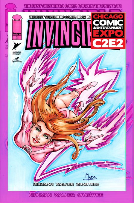 AtomEve is available stop by table J-5 at @c2e2 Or message me. #invincible #atomeve #adameve #sketchcover #imagecomics #skybound #copic #gonemadd