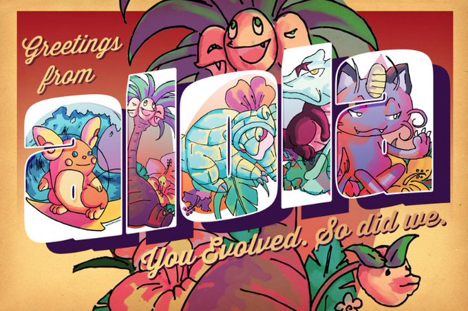 Aloha Alola! 🍹🌺 Postard collaboration w/ @alexgrav90 he drew & I designed 🌴🌸 #sunandmoon #pokemon20 #alolaform #PokemonSunMoon