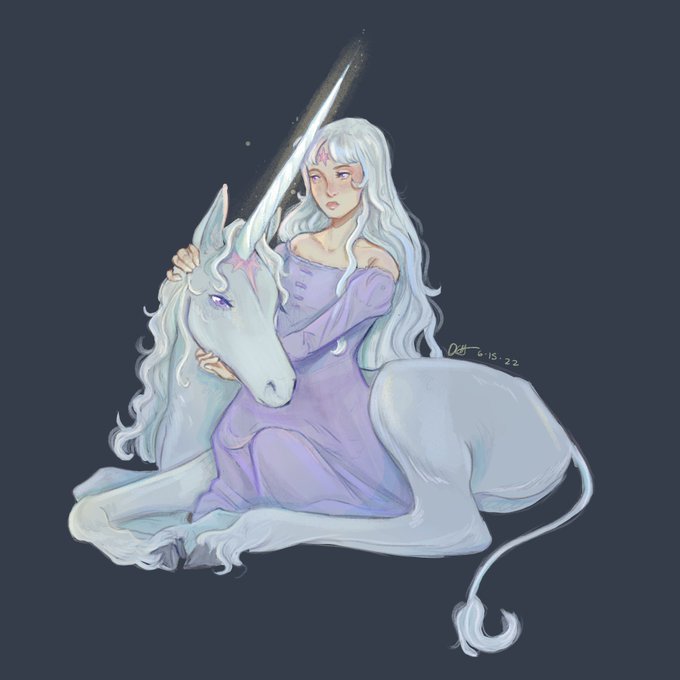 I love the Last Unicorn! Lady Amalthea has a special place in my heart. #art #ArtistOnTwitter #thelastunicorn