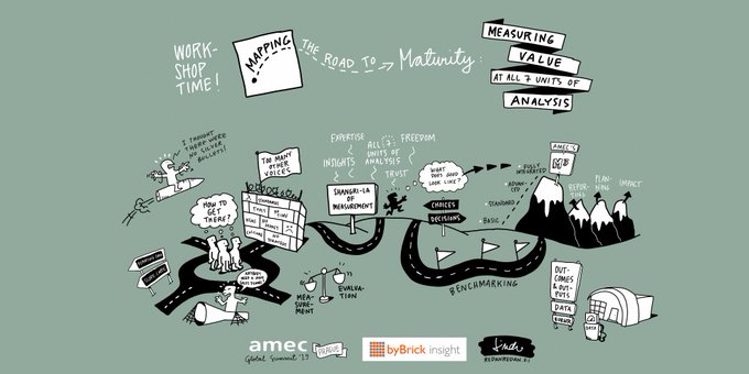 Here are the sketch notes from this mornings workshop on the Maturity Mapper created by @saurau @bybrickinsight #amecsummit #measurement #communications #PR #marketing #datascience