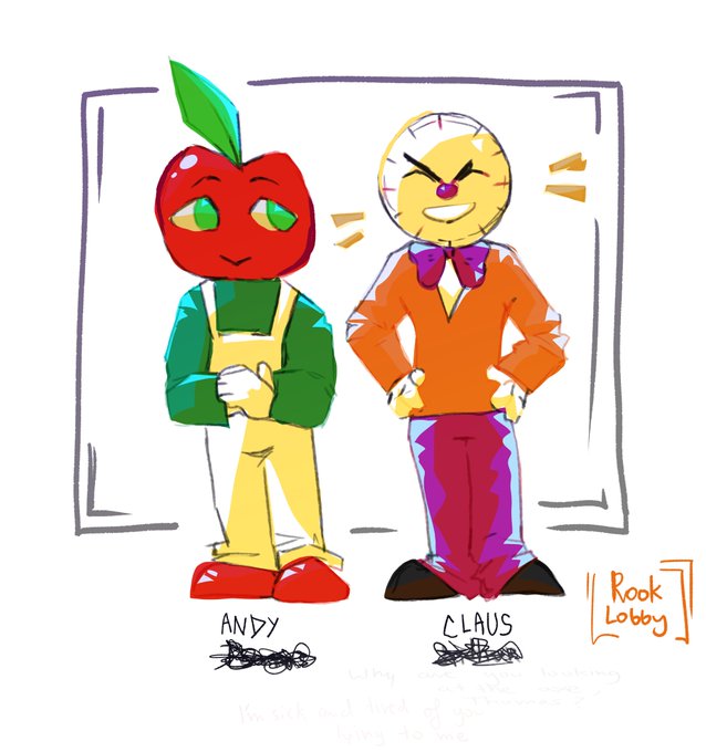 Claus and Andy doodles bc I'm emo like that || Tags: #aaf #aaffanart #AndysAppleFarm #andysapplefarmfanart #claustheclock #andytheapple