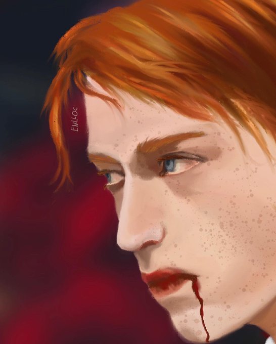 This picture I drew for my beloved @404badwoIf , my soulmate, my life😍❤️ I was inspired by very interesting film Antiviral starring the gingerest boy Caleb Landry Jones very bloody and beautiful film with a sense of vampires😌