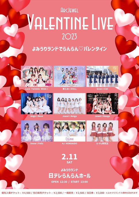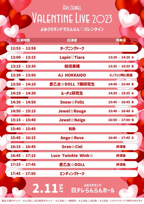 明日の『ArcJewelバレンタインライブ2023~よみうりランドでらんらん バレンタイン~』のチケットは、今日までの締切です❤️