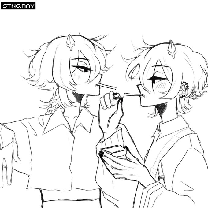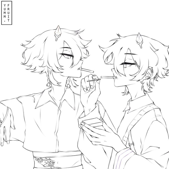 hey! here's a recent art collab i finished with @yummfruit . he did the lining and i did the sketch + coloring. featuring our artist personas!